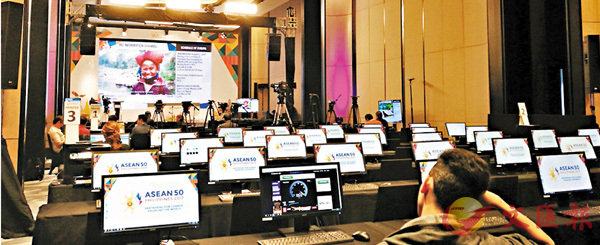 ■第50屆東盟外長會議昨日在菲律賓馬尼拉開幕。圖為位於馬尼拉康萊德酒店的新聞中心。 中新社香港文匯報訊 據中通社報道,菲律賓作為東盟輪值主席國,會於8月2日至8日舉辦東盟外長會、東盟與中日韓(10+3)外長會、東...