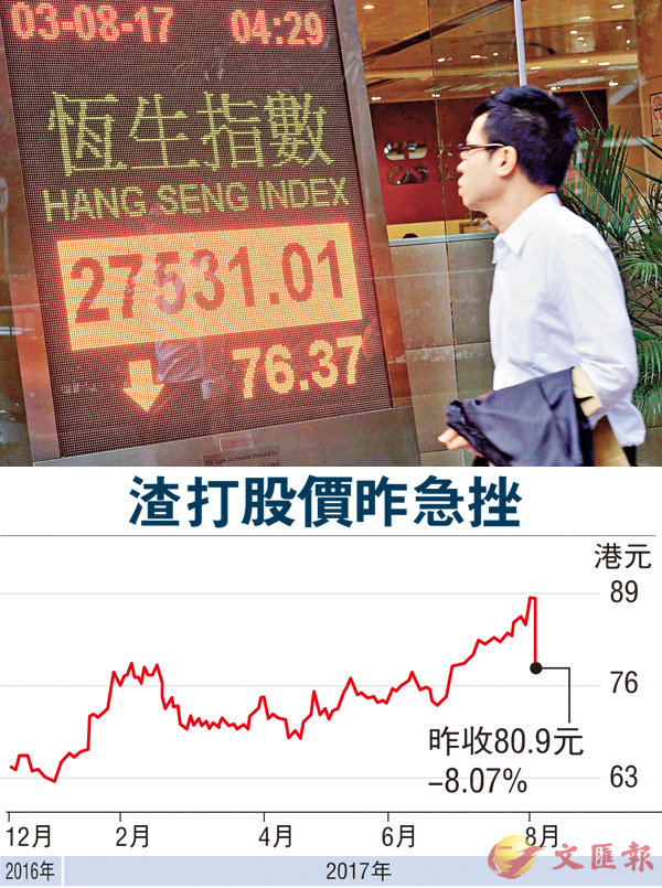 ■恒指昨一度跌逾200點,收跌76點,成交回落至862億元。 中新社香港文匯報訊(記者 陳楚倩、周紹基) 港股昨中止三日升勢,市場由於擔心美國可能制裁中國出口,或進一步引發貿易戰,加上港元跌至一年半低位,影響大市...