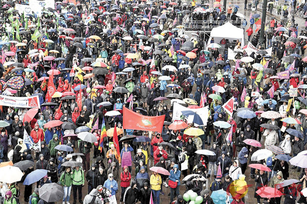 ■德國漢堡有約1.8萬名示威者遊行往市中心,沿途高舉橫額,提出公平貿易及環保等訴求。 法新社料30場示威恐爆暴力 2萬警戒備二十國集團(G20)峰會將於周五起一連兩日在德國漢堡舉行,當地前日出現首場反全球化示威,並...