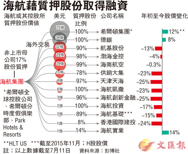 質押15上市公司 部分達持股九成香港文匯報訊(記者 歐陽偉昉)近年在海外併購市場異軍突起的海航集團,雖然大手收購不斷,但公司似有源源不絕的「彈藥」。彭博社昨日以分析所匯編的監管文件,揭開海航資金之謎。報道...