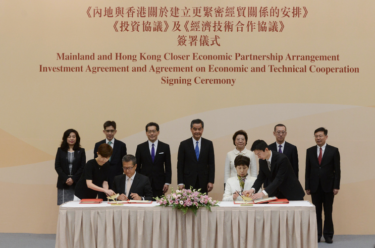 中央政府與香港特區政府今日(28日)簽署《內地與香港關於建立更緊密經貿關係安排》(CEPA)下的《投資協議》及《經濟技術合作協議》。香港財政司司長陳茂波與中國商務部副部長高燕,在香港行政長官梁振英和香港中聯辦...