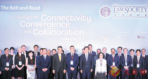 ■香港律師會昨日舉辦「一帶一路法律論壇」開幕禮。前排左四起:袁國強、梁振英、蘇紹聰、張曉明、佟曉玲與其他嘉賓合照。梁振英張曉明見證 港法律服務添新動力香港文匯報訊(記者文森)在香港律師會昨日舉辦的「一帶...