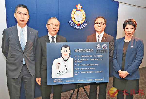 ■警方聯同香港生產力促進局及政府資訊科技辦公室召開記者會,跟進「WannaCry」勒索病毒事件。左一為黃家偉,左二為林偉喬。 香港文匯報記者潘達文 攝中招家庭用Windows 7 警:勿交贖金不建議格式化香港文匯報訊(記...