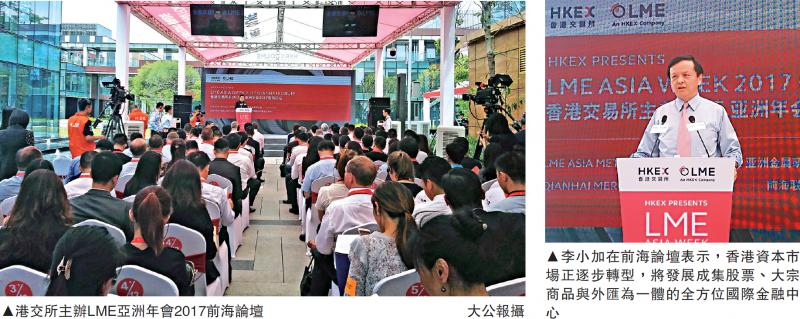 早前有外電報道,港交所(00388)會於昨日宣布前海大宗商品交易平台開業。不過,行政總裁李小加於深圳前海澄清,昨日前海的活動只是LME亞洲年會論壇的一部分,而交易平台並不是昨天開業。他又指出,港交所正着眼現貨...