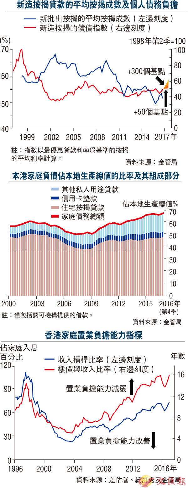 債務佔GDP 67.2% 收入槓桿比率攀至72%香港文匯報訊(記者 顏倫樂)樓市持續「發燒」,差估署昨日公佈數據,2月樓價指數再升至312.8點的歷史新高,數字連升11個月,累升15.3%。樓價越來越貴,帶來另一個問題是港人的供...