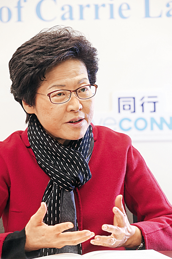 ■林鄭月娥表示,自己堅持要見完38個界別選委、做了100場會面、12場座談會,才正式提出完整政綱,是希望廣納意見,真正做到與各界「同行」。 莫雪芝 攝接受本報專訪 述起草政綱堅持先見38界別 百場會面納眾議特首候選...