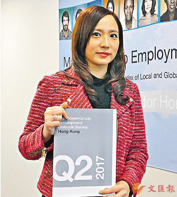 ■徐玉珊指出,本港僱主第二季增聘人手意慾平穩。 岑志剛 攝香港文匯報訊(記者 岑志剛)人力資源公司ManpowerGroup第二季就業展望調查顯示,本港僱主第二季增聘人手意慾平穩,17%僱主計劃請人;78%僱主未有調整計劃...