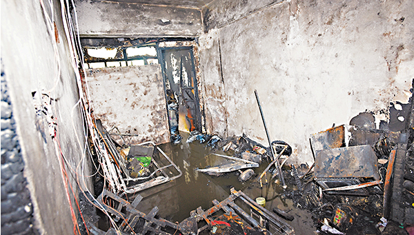■起火的元州街劏房單位,滿目瘡痍。香港文匯報訊 (記者 杜法祖) 高齡唐樓樓梯狹窄雜物多,且多缺防火設施,住客活在火警威脅中。長沙灣及深水埗昨晨有唐樓劏房單位在個半小時內先後發生火警,釀一死,28人送院。其...
