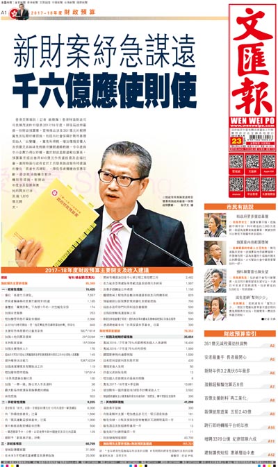 香港大公文匯傳媒集團全媒體新聞中心製圖陳茂波於立法會宣讀任內第一份《財政預算案》(記者麥鈞傑攝)市民排隊領取2017/18年度政府《財政預算案》手冊(記者麥鈞傑攝)【文匯網訊】新任財政司司長陳茂波今日(22日)宣...