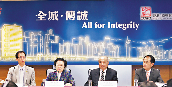 ■廉署在新聞簡報會上匯報2016年工作概況。 莫雪芝 攝香港文匯報訊(記者 文森)廉政公署諮詢委員會昨日公佈,廉署去年全年共接獲2,891宗貪污舉報,按年上升3%,六成涉及私營機構,三成涉及政府。貪污問題諮委會主席...