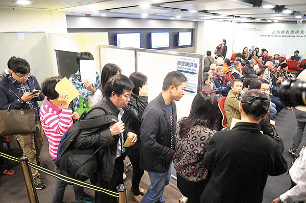 ■「綠置居」新蒲崗景泰苑,857個單位開始揀樓。 梁祖彝 攝不足一小時已被揀走 對正工廠區單位「冇人理」香港文匯報訊(記者 岑志剛)房委會「綠置居」新蒲崗景泰苑,857個單位昨日開始揀樓,最貴「樓王」31樓15號室...