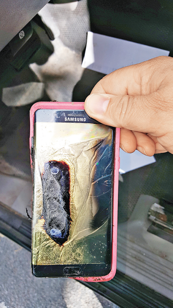 ■美國客戶展示更換後仍爆炸的Note 7。美聯社換機都爆陷公關災難 「爆炸改圖」笑爆全球Galaxy Note 7今年8月推出後,隨即傳出電池過熱起火,三星在9月初展開全球回收計劃,外界當時盛讚三星反應迅速。然而,三星並沒...
