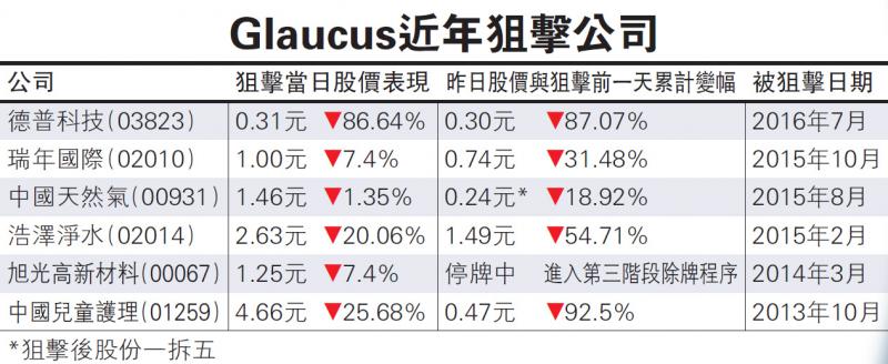 近年沽空機構頻頻來港「搵食」,沽空機構格勞克斯(Glaucus Research)就多次發表報告,狙擊在港的上市公司指其帳目造假,近期就曾稱德普科技(03823)財務內容不實,令其股價單日大跌近九成。格勞克斯研究部總監Sor...