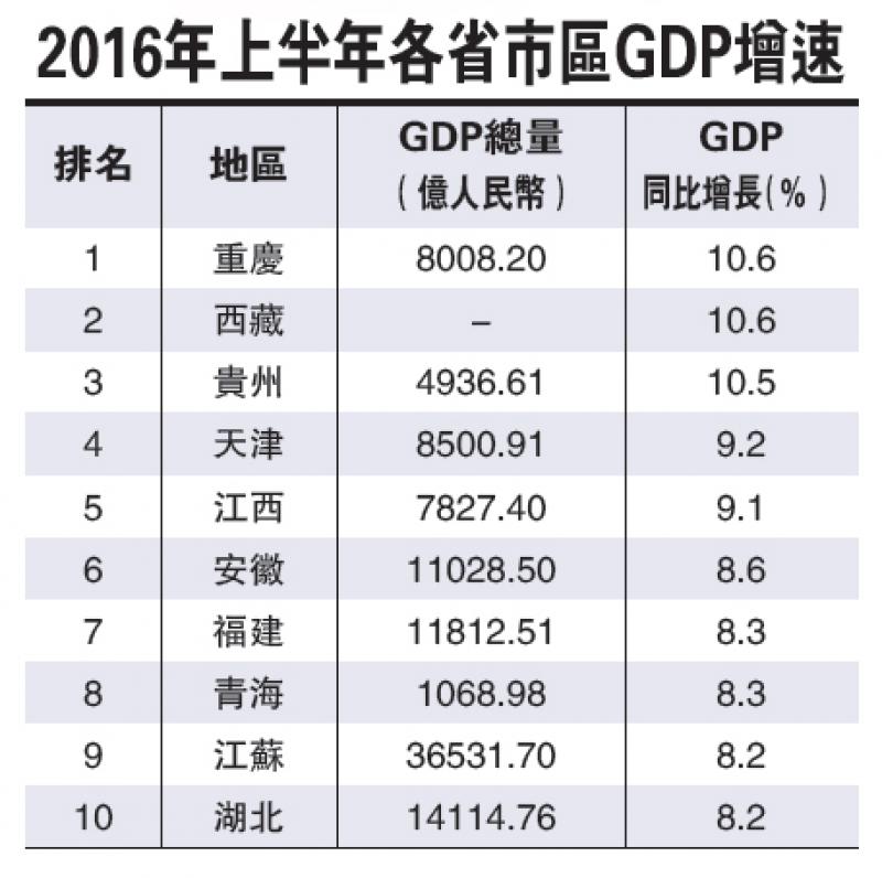 上半年GDP增速 渝居首遼墊底