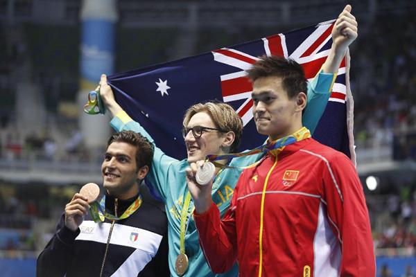 8月6日,澳大利亞選手霍頓,中國選手孫楊(右)和意大利選手德蒂在頒獎儀式上。【文匯網訊】據新華社報道,針對近幾日澳大利亞游泳運動員霍頓對於中國奧運冠軍孫楊進行的人身攻擊,中國游泳協會正式致電澳大利亞游泳...