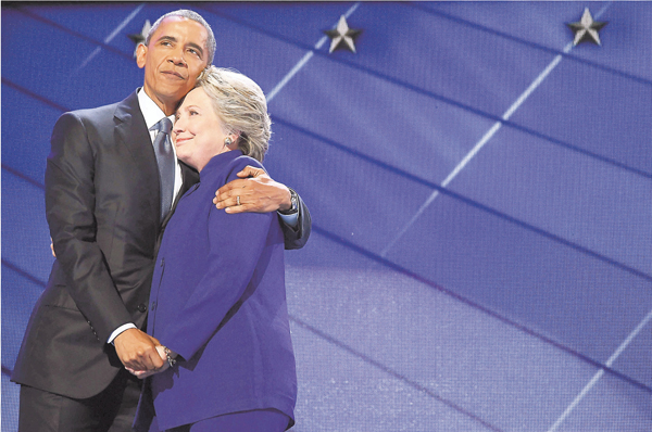 ■希拉里與奧巴馬在台上深情擁抱。 法新社特朗普民調拋離7個百分點美國民主黨全國代表大會前日進行第3天議程,邀來多名重量級嘉賓演講,為該黨總統候選人希拉里站台,當中最受矚目的莫過於現任總統奧巴馬。從2008年黨...