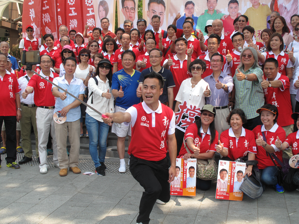 图:郭伟强团队昨在香港仔举行造势大会,郭与支持者玩自拍 大公报记者林良坚摄大公网8月1日讯 (记者 文 轩) 继前日在湾仔及中西区巡游造势之后,参选港岛的工联会郭伟强团队马不停蹄,昨日在香港仔举行近百人...
