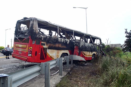 圖:出事車輛的右后門被護欄阻塞,乘客無法打開逃生/法新社 大公網7月20日訊 19日陸客團旅遊巴于桃園起火造成26人死亡的意外疑點重重。台灣遊覽車公會表示,這輛旅遊巴合共8個逃生出口,但均沒有利用和打開。其...