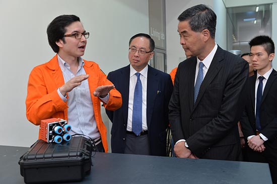梁振英(右二)上任後,即推動創科發展。圖為他早前赴法國訪問,其中參觀巴黎開發硬件科技企業。左二為創科局局長楊偉雄大公網6月28日訊 (記者 劉家莉)回歸19年來,特區政府一直將教育列為最大公共開支項目。除了積...