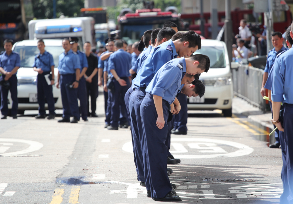 大批消防員昨天下午到場路祭,送別張耀升\\大公報記者蔡文豪攝大公網6月28日訊 (記者 張月琪)英勇無懼,消防典範,「無情的大火已經熄了,你們再也不用掛心,一路走好」。數百名消防同袍及逾百市民,昨午送別在淘大...
