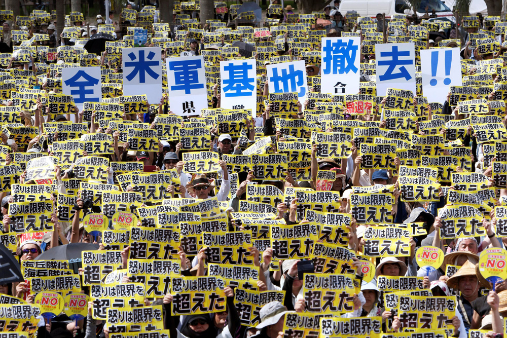 圖:數萬日本民眾19日在沖繩縣那霸市舉行抗議集會/路透社【大公報訊】綜合路透社、《日本時報》報道:駐日美國海軍陸戰隊司令尼科爾森18日宣布,美國最早可能於明年初,把在沖繩島上大約1萬英畝的土地歸還給日本。由...