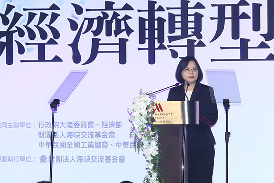 圖:台灣地區領導人蔡英文8日晚出席大陸台商端午聯誼活動時,提出要以台灣經濟轉型帶動台商回台投資/中央社大公網6月9日訊 台灣海峽交流基金會(海基會)8日下午舉辦2016大陸台商端午節座談聯誼活動,多名台商代表則...