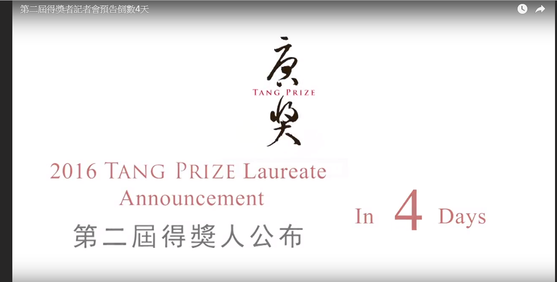 【台灣】東方諾貝爾獎「唐獎」 18日起陸續揭曉