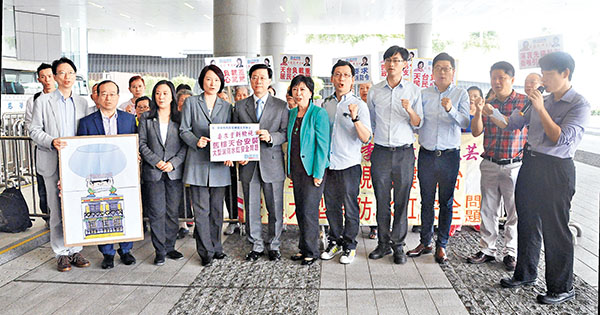 ■民建聯要求重新檢視舊樓天台安裝大型消防水缸安全問題。 陳文華 攝香港文匯報訊(記者 陳文華)城大天台倒塌事件引起市民對天台安全的關注,惟政府2007年修訂《消防安全(建築物)條例》規定1987年或之前建成樓宇需...