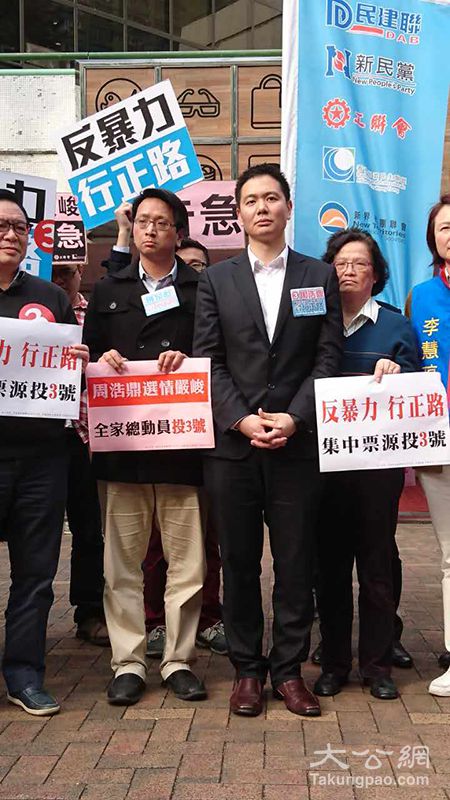 周浩鼎向新東選民緊急呼籲:反暴力,行正路,集中票源投3號!大公網2月28日訊 新界東補選3號候選人周浩鼎選情告急,在今下午4時,民建聯主席李慧琼、副主席陳勇、立法會議員葛珮帆、陳恒鑌,聯同建制政黨及社團領袖,...