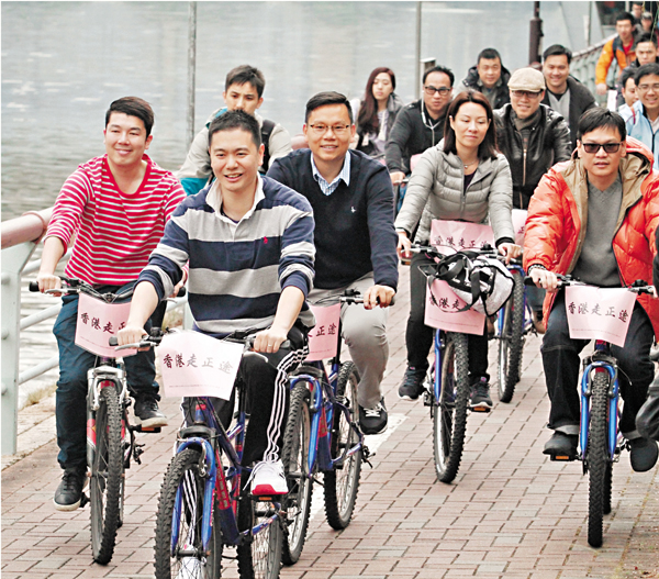 ■新界青年聯會「香港走正途」單車行,周浩鼎、陳恒鑌等參加。 黃偉邦 攝新界青聯80青單車行 拉繩掃障寓港要重回正軌香港文匯報訊(記者 陳庭佳)年輕人身體力行,支持香港重回正軌。約八十名青年昨日組成單車隊,穿...