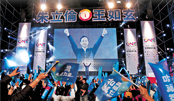 ■國民黨選前之夜造勢晚會昨日在新北市板橋第一體育場前廣場舉行,朱立倫夫婦、王如玄、周美青等一起呼喊口號。中央社朱4小時冒雨連掃8區 蔡盼走完「最後一里路」香港文匯報訊 (特派記者 葉臻瑜、林舒婕 台北報道)...