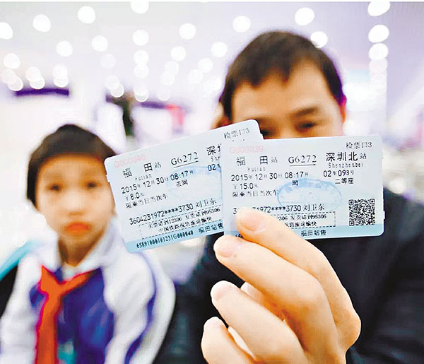 ■市民劉先生專程帶兒子體驗高鐵列車。 本報深圳傳真香港文匯報訊(記者 郭若溪 深圳報道)廣深港高鐵香港段通車時間一推再推,高鐵香港段是否能在2018年第三季如期通車仍難料。搭乘頭班車的黃先生稱,希望香港段可盡...