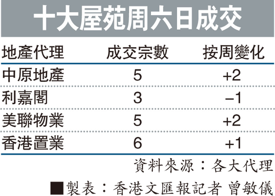 香港文匯報訊(記者 曾敏儀)提供五花八門優惠的新盤吸盡購買力,二手成交持續冰封,十大屋苑成交量連續18個周末周日處於個位數水平上落。據美聯物業及中原地產昨日統計,剛過去的周六日,該兩大龍頭代理各僅錄約5宗...