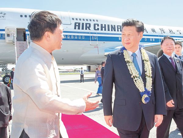 習近平啟「APEC時間」 中國良方共築亞太夢http://paper.wenweipo.com [2015-11-18]放大圖片■習近平抵達馬尼拉出席亞太經合組織第二十三次領導人非正式會議,菲律賓高級官員到機場迎接。 新華社包容...