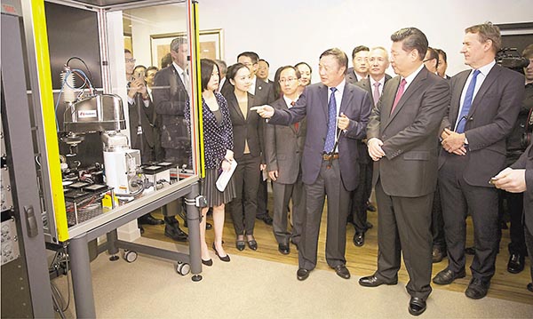 ■習近平在華為總裁任正非陪同下到華為英國公司訪問,他在展廳駐足參觀機械手及終端產品。路透社香港文匯報訊(記者 周紹基)國家主席習近平訪英期間,與英國首相卡梅倫公佈多項合作計劃,其中包括港交所(0388)籌劃...