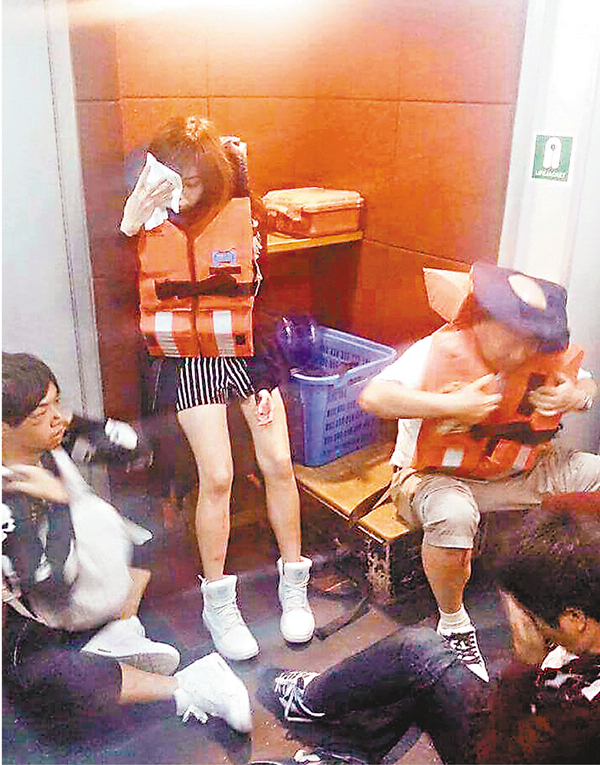 ■有撞傷額頭的女乘客穿上救生衣等待救援。 網上圖片「海皇星」號入水失動力 消防助8重傷者直升機送院香港文匯報訊(記者 鄺福強、杜法祖)載163名乘客由澳門返港的噴射飛航「海皇星」號,昨日傍晚途至大嶼山西南部...