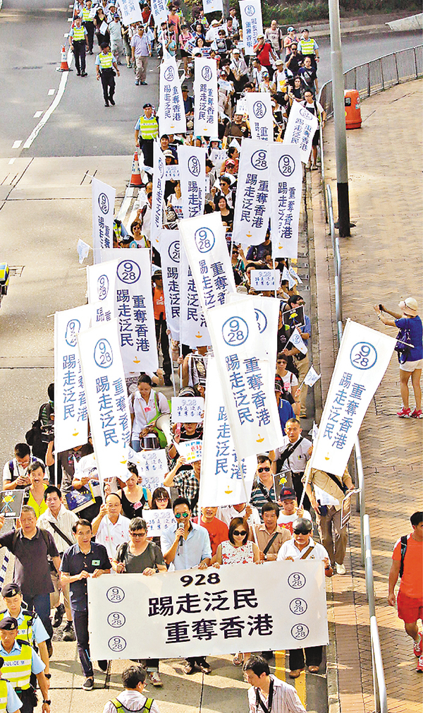 違法亂港的「佔中」行動嚴重損害香港核心價值,遺害至今。二百多名「佔中不代表我」和「忠義民團」等反「佔中」團體成員,昨日趁「佔中」行動一周年在中環發起「反紀念」遊行,強烈批評「佔中」禍港,認為「9.28」是...