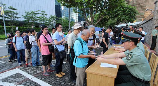 大公網6月22日訊(記者唐曉明)為慶祝香港回歸祖國18周年,解放軍駐港部隊將於今年七月壹日開放昂船洲軍營和石崗軍營讓市民參觀。昨日上午駐港部隊在六個軍營門口免費派發壹萬八千張門票。雖然不時下雨,但仍無阻市民...
