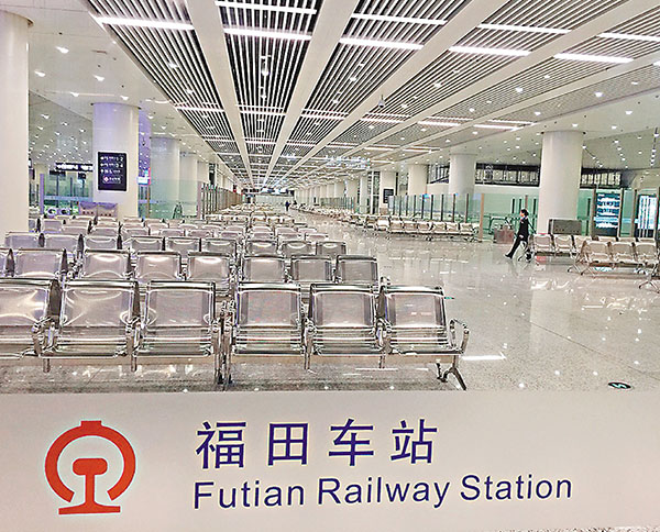 ■高鐵福田站候車大廳。 記者郭若溪 攝香港文匯報訊(記者 郭若溪 深圳報道)廣深港高鐵福田站處於深圳市中心區主要交通幹道深南大道上,作為亞洲最大的地下火車站,福田站總建築面積達到14.7萬平方米,相當於21個足...