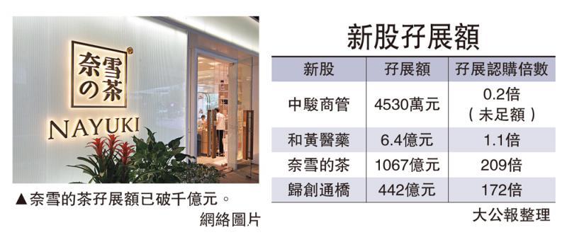 奈雪的茶超購209倍 孖展凍資千億