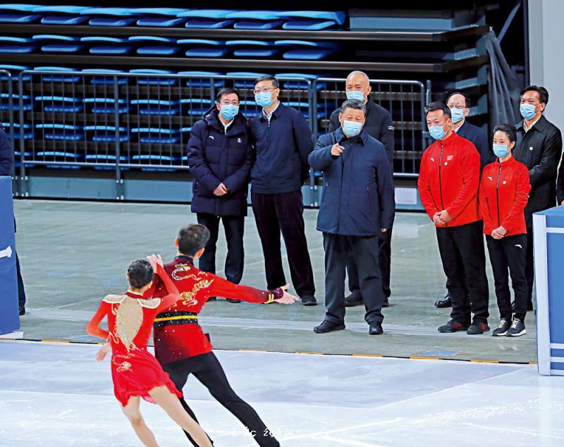 圖:18日,習近平在位於北京市海淀區的首都體育館考察調研,了解運動場館建設和運動員參賽備戰等情況,看望慰問運動員、教練員。\\新華社...