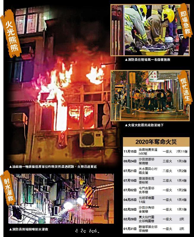油麻地一唐樓昨晚發生嚴重火警,18人送院,其中7人死亡,包括一名男童,另有7人危殆及多人受傷。事發單位為一間尼泊爾餐廳,消息指當時正舉行生日會,疑有蠟燭燒着隔音板起火,火勢迅速蔓延,並傳出多次爆炸聲,火...