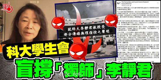 香港科技大學社會科學部鍾士元講座教授李靜君過去多次發表涉「獨」言論,更自爆曾參與黑暴活動,阻擾警方執法。李靜君至今未有進一步回應,科大人文社科學生會前日卻主動發聲明護航,宣稱對方參與「社運」是行使「示威及集會自由」,又謂...[详细]
