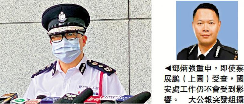 香港警務處國家安全處處長、警務處高級助理處長蔡展鵬,涉光顧無牌按摩店,目前正休假接受調查。警務處處長鄧炳強昨日於記者會交代事件,確認被調查警員為蔡展鵬。 [详细]