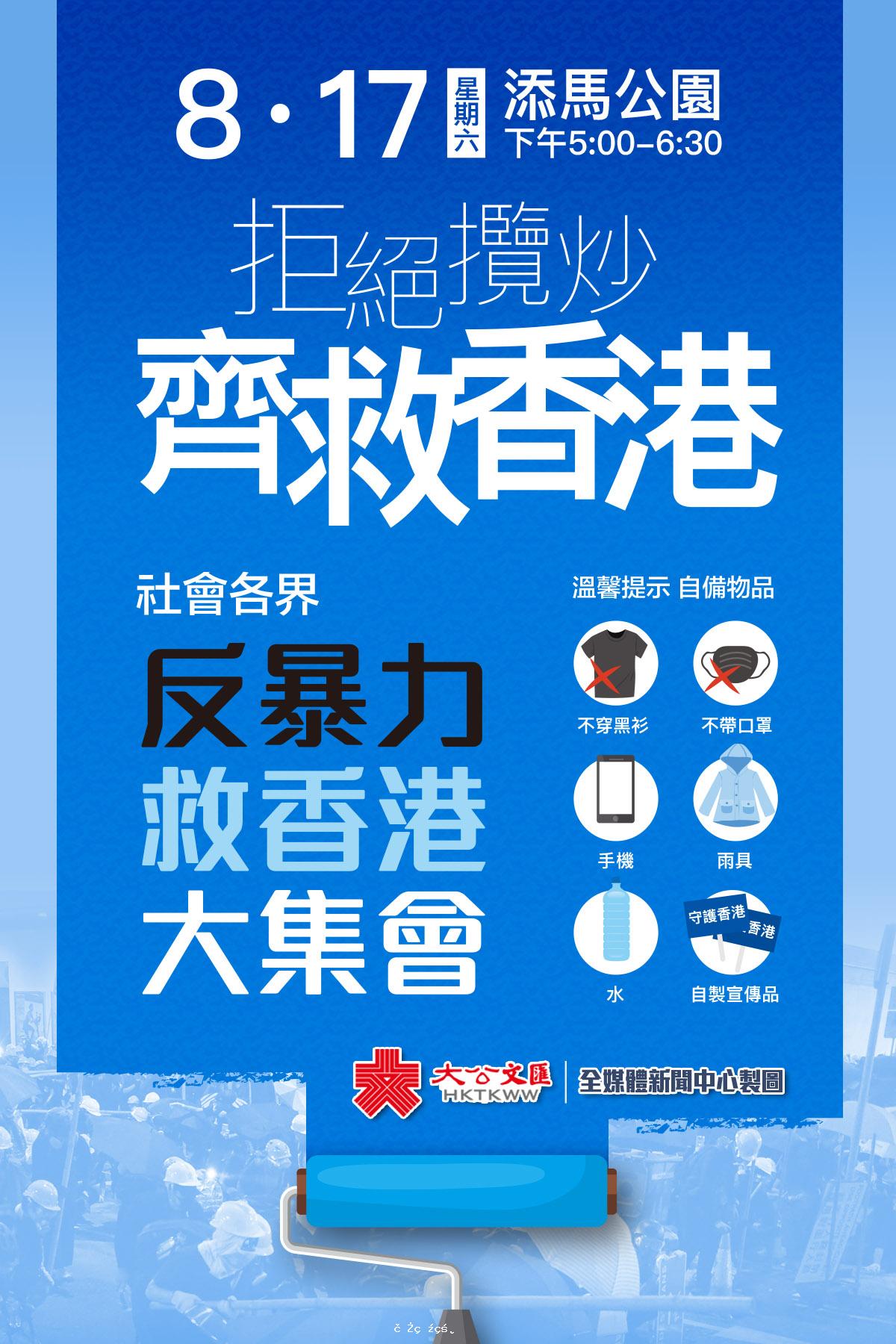 反暴力救香港 8.17齊聚金鐘添馬公園