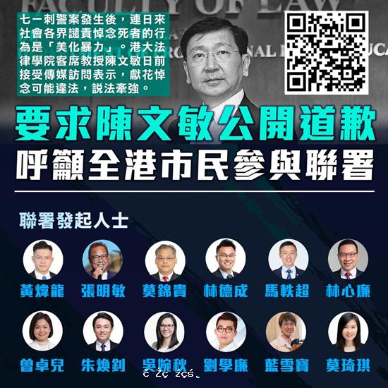陳文敏美化恐怖活動 各界聯署譴責促道歉