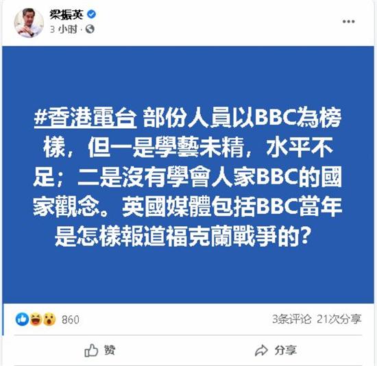 梁振英斥香港電台部分人員視BBC為「榜樣」
