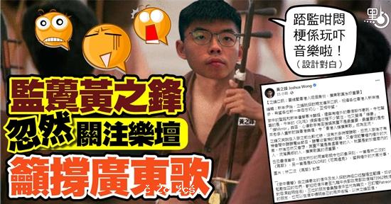 監躉黃之鋒忽然關注樂壇 籲撐廣東歌