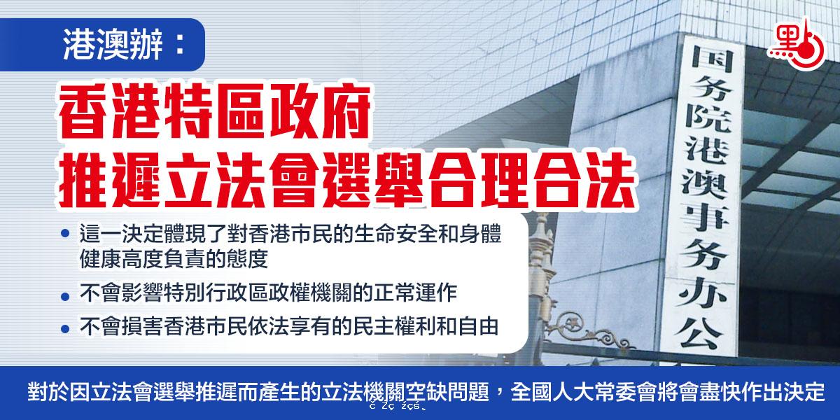 港澳辦:香港特區政府推遲立法會選舉合理合法