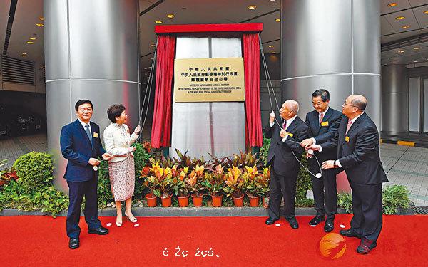 ■ 董建華(右三)、梁振英(右二)、林鄭月娥(左二)、駱惠寧(左一)與鄭雁雄(右一)為駐港國安公署揭牌。 新華社[详细]